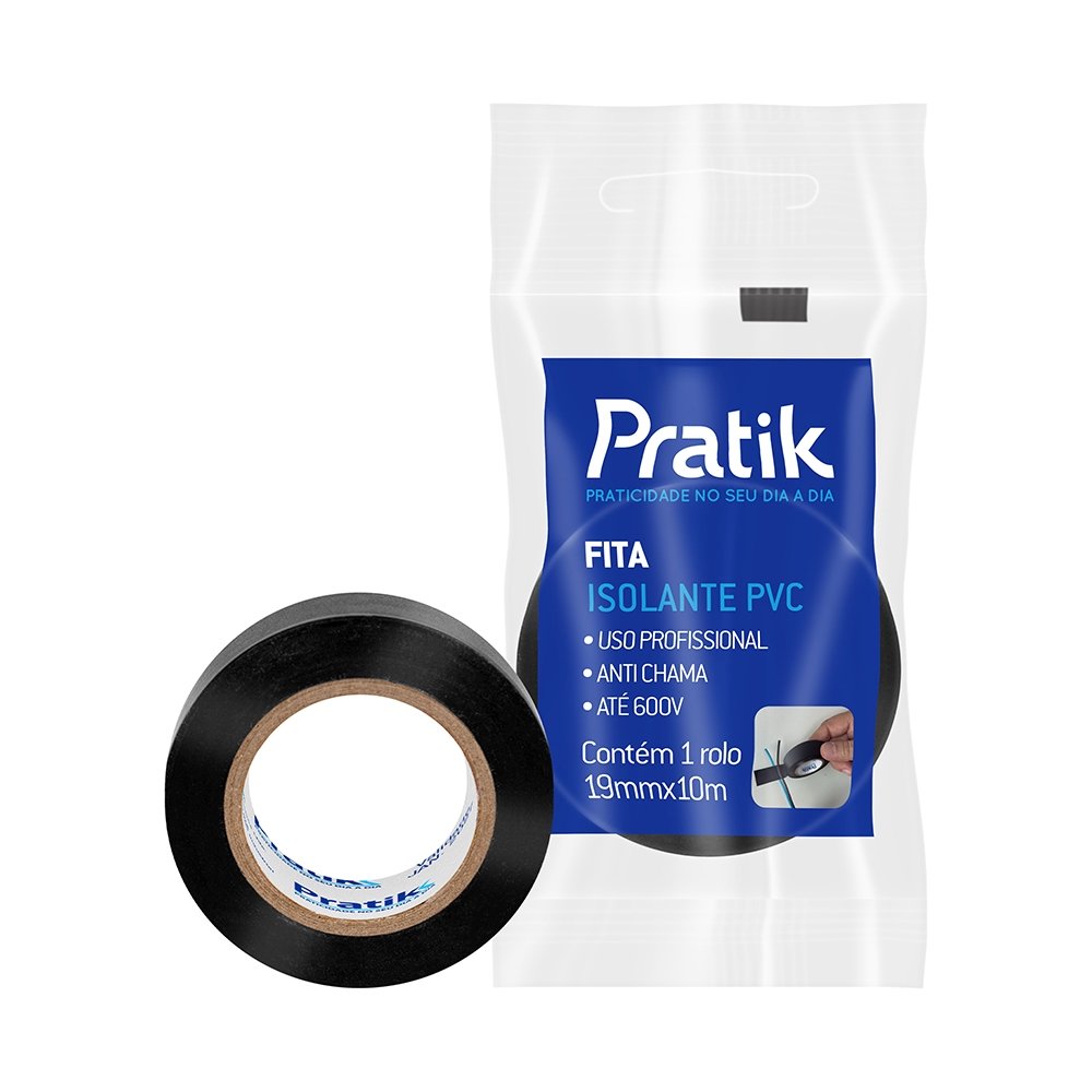 A Fita Isolante Pratik 19mx10mm Preta é ideal para isolamento elétrico, garantindo segurança e proteção contra choques e curtos-circuitos. Produzida em PVC resistente, oferece alta durabilidade e é indicada para uso profissional até 600V. Com design antichama, esta fita assegura maior segurança em instalações elétricas.